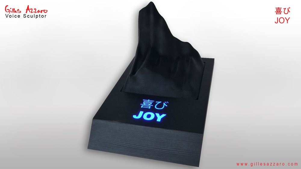 Cette sculpture est l'empreinte vocale tridimensionnelle imprimée en 3D du mot " Joy" qui à un sens et un rôle bien précis: